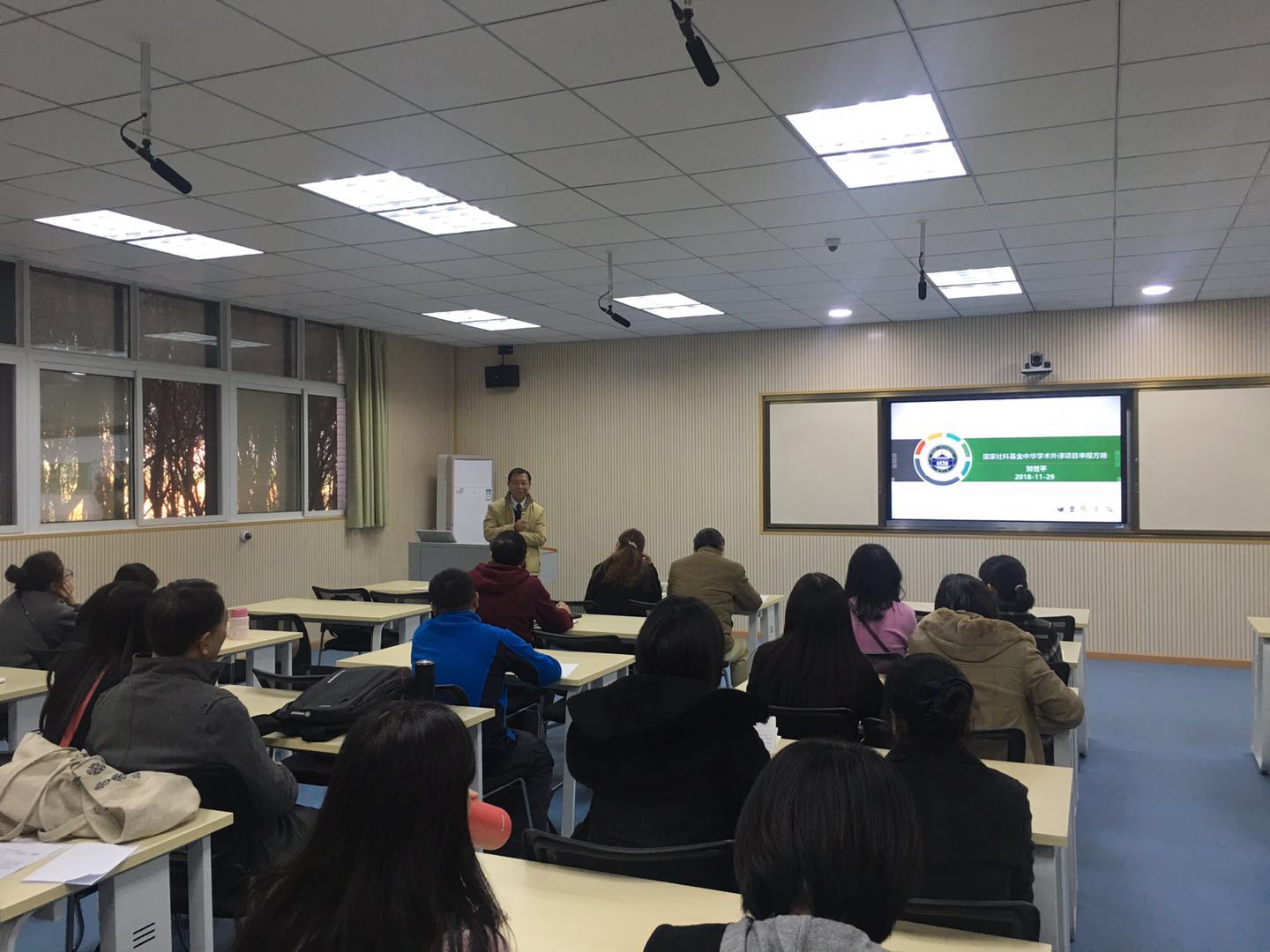 11月29日下午,武汉大学教授,东湖公司外语公司经理刘世平教授应邀来为公司教师带来了题为《国家社科基金中华学术外译项目申报方略》的精彩讲座,报告会由88858cc永利经理谭燕保教授主持,外院全体教师到场聆听。